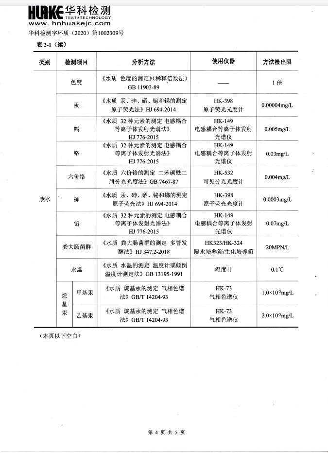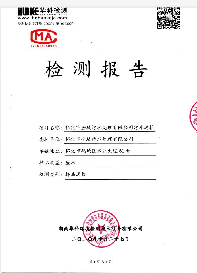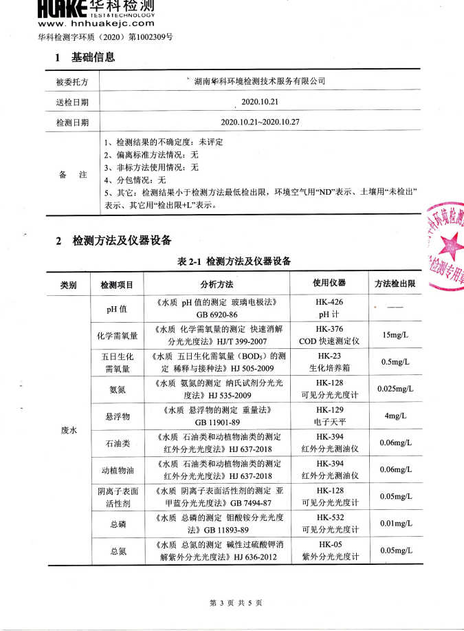 华科检测 2020年10月污水检测报告