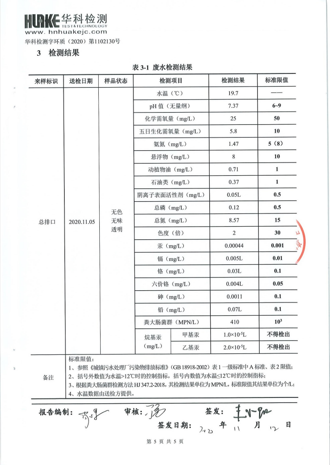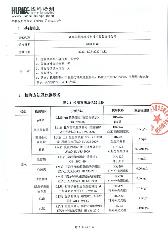 湖南怀德检测技术有限公司 2024年12月 污水出水检测报告